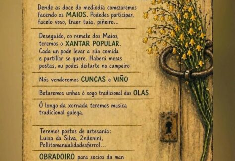 A asociación veciñal O Rueiro, xunto co Concello, impulsa un xantar popular con música tradicional, postos de artesanía, xogos… Un