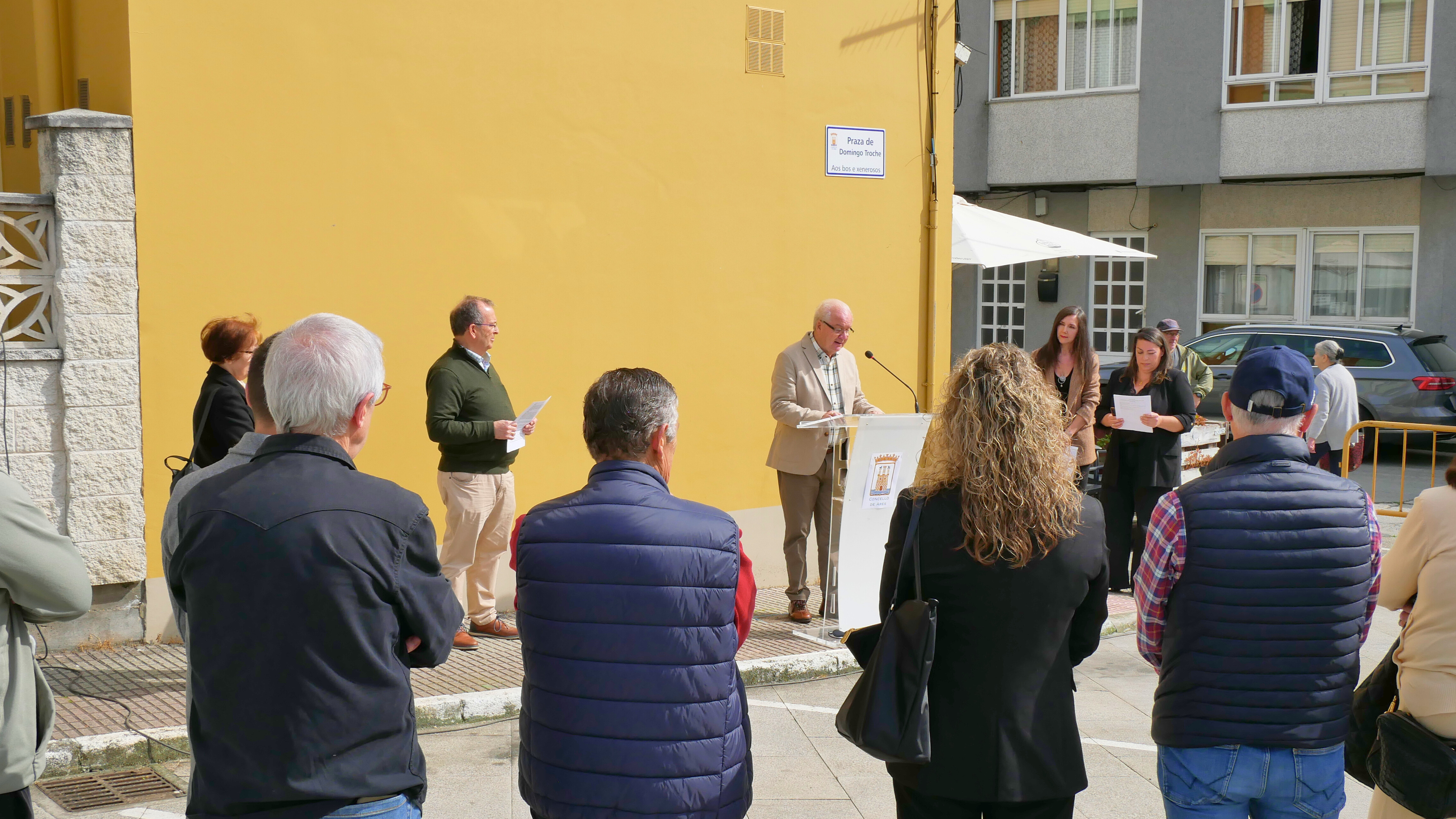 Presentes no acto estiveron a concelleira de Cultura, Alma Barrón; as edís do grupo de goberno Victoria Montenegro, Olimpia Marcos, Lucía Blanco e Luis Cendán; representantes da corporación municipal; directivos do CIRS Cervás e a Agrupación Instrutiva de Caamouco, ambas entidades vinculadas co proceso migratorio aresá; e Montse Larios, descendente do propio Domingo Troche e encargada de comezar coa lectura da acta fundacional da Alianza.