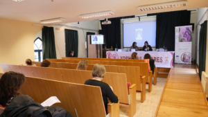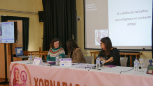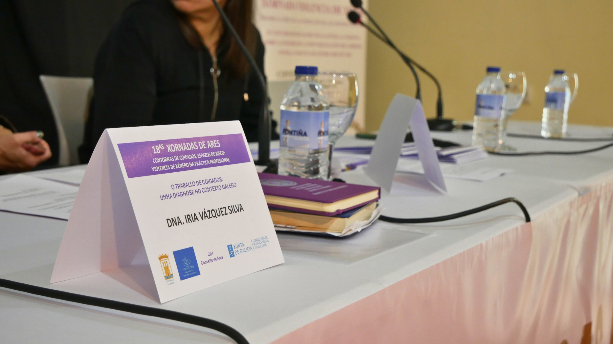 - O salón de actos da Alianza Aresana congrega durante todo o día a expertas no eido xurídico e social para pensar conxuntamente as fórmulas de prevención e os espazos de riscos dos profesionais dos coidados.