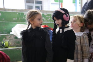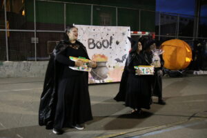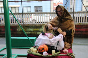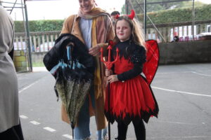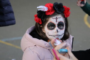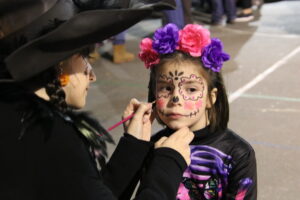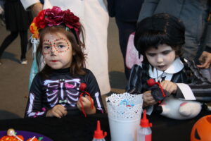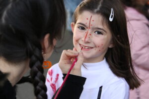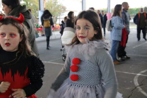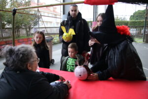 As familias gozaron das actividades que se propuxeron dende a Concellaría de Cultura, con obradoiros –un de feridas e maquillaxe e outro de chupa chups vampíricos–, inchables, o cantabaila, animación musical e, por suposto, un bo puñado de castañas asadas.