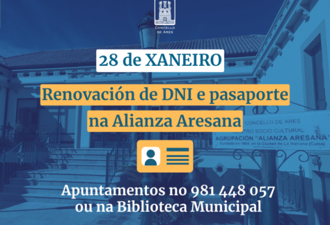 Renovación de DNI y pasaporte en la Biblioteca Municipal de Ares el próximo 28 de enero