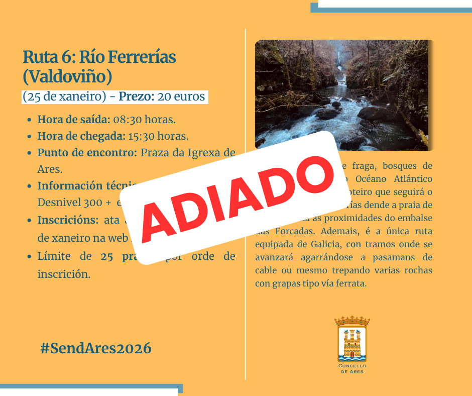 Por circunstancias meteorológicas adversas , la próxima ruta del SendAres prevista para este domingo, 📅 25 de enero, ha sido aplazada.
