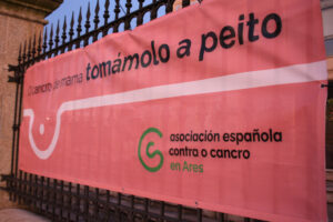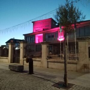 Durante todo el fin de semana, la fachada del Concello permanecerá iluminada de color rosa, acompañando la pancarta que luce en el exterior de las instalaciones municipales de la Asociación Española contra el Cáncer en Ares.