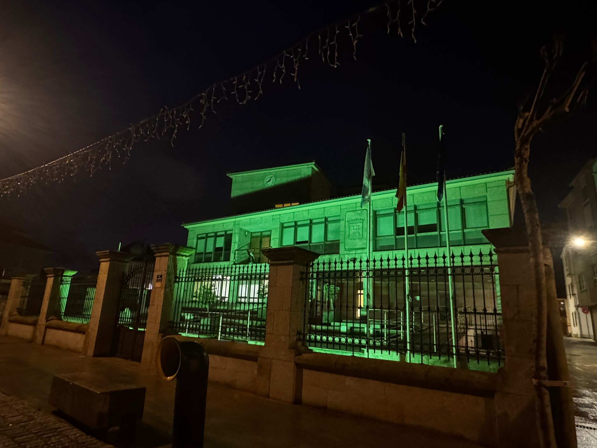 En la noche del pasado 4 de febrero, Día Mundial contra el Cáncer, la fachada de la casa consistorial se tiñó de verde como gesto simbólico de apoyo y solidaridad con las personas que padecen esta enfermedad oncológica, así como con sus familias y personas allegadas.