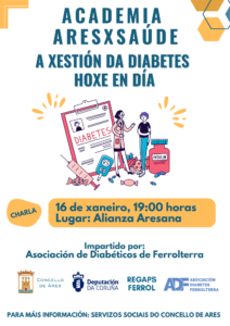 El taller requiere inscripción previa en el Departamento de Servicios Sociales o en el teléfono 981 448 354, mientras que la charla divulgativa es de entrada libre hasta completar aforo en el salón de actos de la Alianza. En ambos casos se cuenta con la colaboración fundamental de la Asociación de Diabéticos de Ferrolterra.