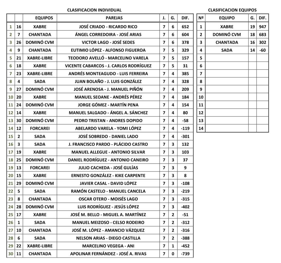 - 1ª pareja clasificada: Club Xabre Ares – José Criado y Ricardo Rico.