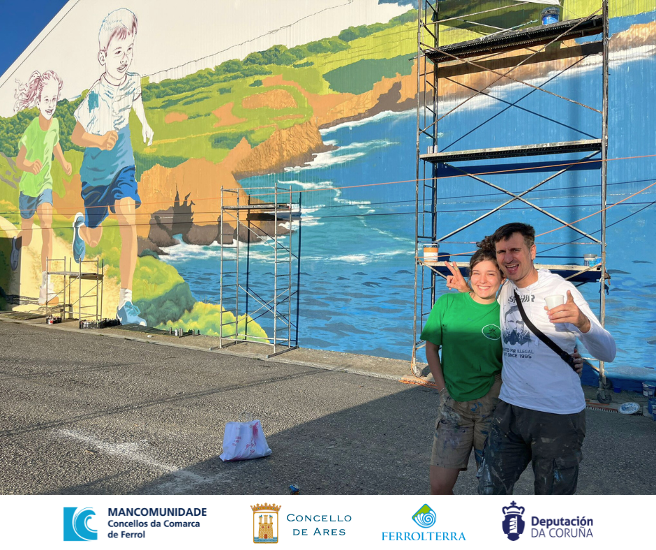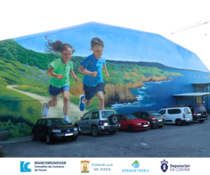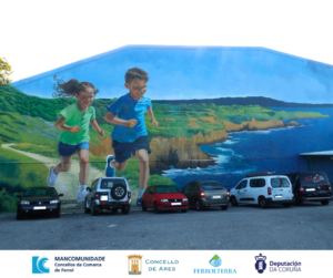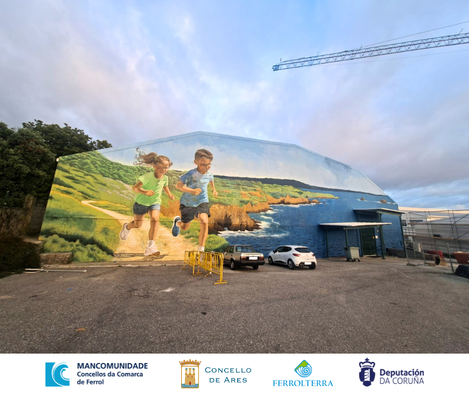 Dos niños corren y juegan con el mar de fondo y con un paisaje muy particular como compañía: los acantilados y calas que se extienden desde las Islas das Mirandas en adelante, símbolo de la relación de Ares con su cultura marinera. A partir de estos elementos se creó el nuevo mural del reconocido artista urbano Sfhir y su equipo en el pabellón polideportivo del municipio, el lienzo que utilizaron durante las últimas semanas para completar su diseño, en clara alusión a la identidad aresana.