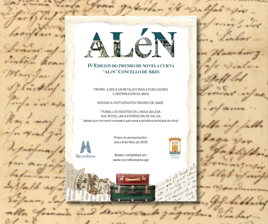 El Premio de Novela Corta Alén Concello de Ares está dotado con 2.000 euros y la publicación de la obra en el catálogo de Hércules de Ediciones. El fallo del jurado, compuesto por personas de reconocido prestigio cultural, se hará público durante el mes de junio de 2026.