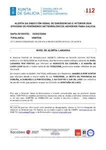 Se ruega adoptar medidas preventivas y, en caso necesario, llamar a Emergencias Galicia en el ☎️ 112.