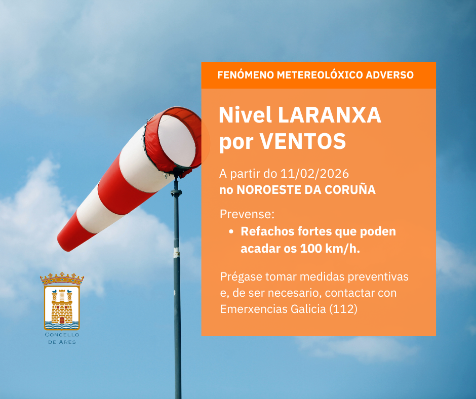 La Agencia Estatal de Meteorología (AEMET) ha informado en su boletín de un fenómeno meteorológico adverso de nivel NARANJA 🟠 (Riesgo importante) por VIENTOS que afectará al noroeste de A Coruña desde media mañana de hoy, 📅 11 de febrero.