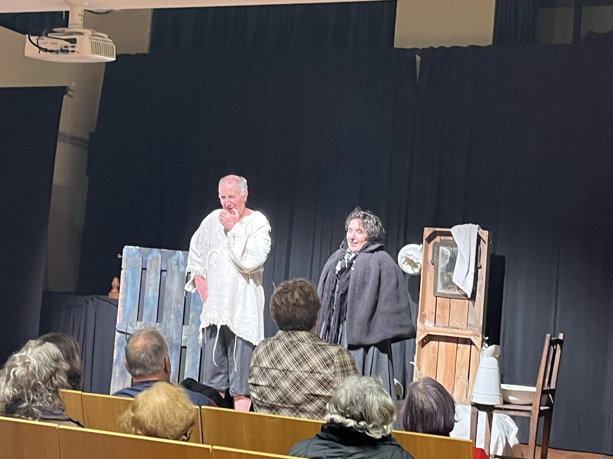 El grupo teatral Os Quinquilláns estuvo el pasado viernes en el salón de actos de la Alianza Aresana adaptando varios de los relatos breves que Alfonso R. Castelao escribió en Cousas, un clásico imprescindible de la literatura gallega.