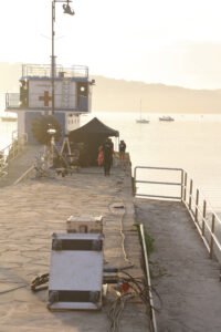 El rodaje continuará también por la tarde, hasta aproximadamente las 18:00 h, e involucra igualmente al Club Náutico, donde se están realizando los procesos de maquillaje y peluquería del elenco actoral.