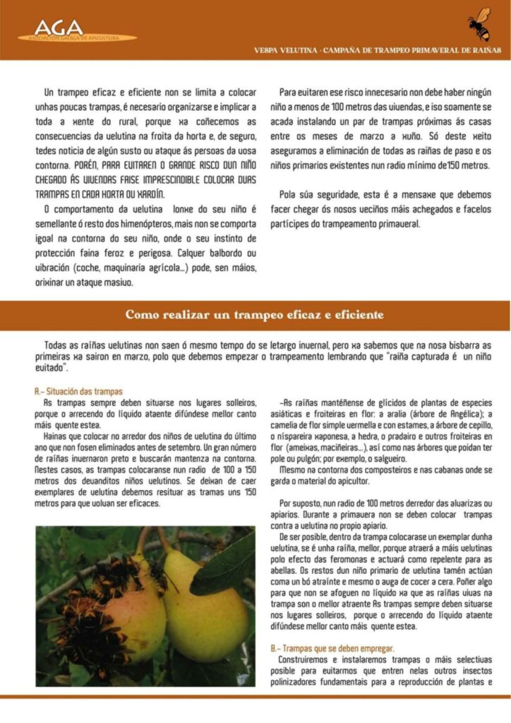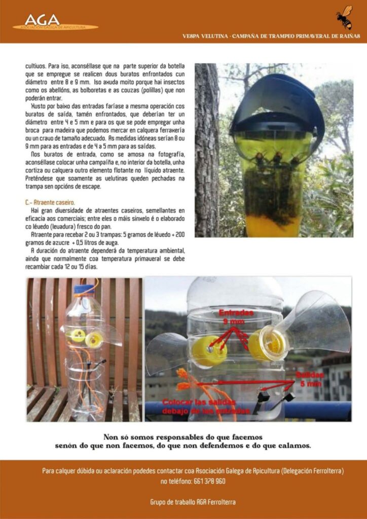 El Concello contribuye a la difusión de la campaña informativa de trampeo primaveral de reinas de vespa velutina impulsada por la Asociación Galega de Apicultura (AGA) Ferrolterra, aportando buenas pautas para colocar trampas en huertas o jardines.
