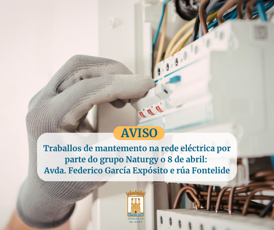 La empresa Naturgy ha comunicado al Concello que, a lo largo de la jornada del 8 de abril, efectuará trabajos de mantenimiento y desarrollo de la red eléctrica entre las 9:00 y las 12:00 h, dejando fuera de servicio una serie de instalaciones, lo que puede provocar interrupciones en el suministro de electricidad durante ese intervalo de tiempo.