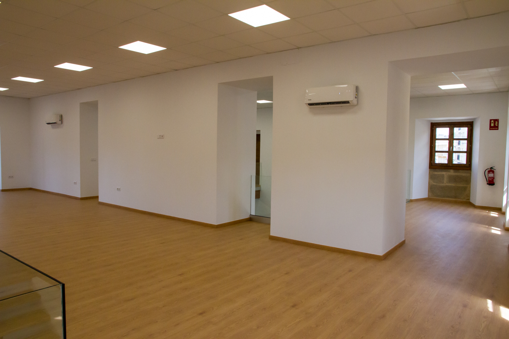 - As obras de acondicionamento actuaron sobre as tabiquerías en planta baixa, a carpintería exterior e interior, o sistema de electricidade e iluminación, a calefacción, os pavimentos… e ata permitiron gañar en superficie útil dos 171,13 metros cadrados iniciais en planta baixa aos 277,09 m2 despois da obra, coa construción dunha media planta.