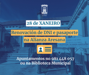 Renovación de DNI e pasaporte na Biblioteca Municipal de Ares o vindeiro 28 de xaneiro Xaneiro 21, 2026