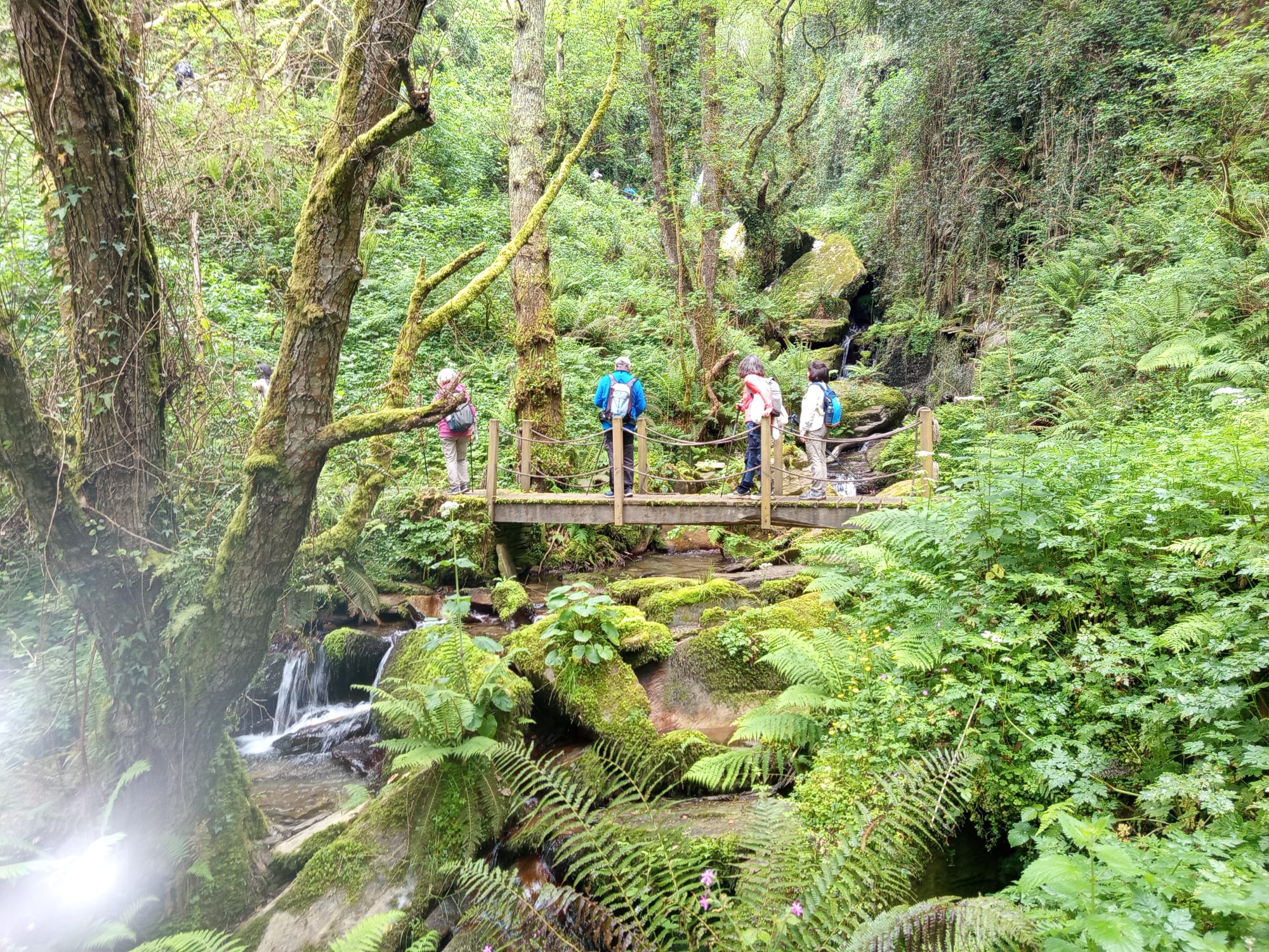 O percorrido, de carácter circular, arrancou na histórica Fonte Vella, ás portas do casco antigo, para avanzar cara á aldea de Valiñadares entre carballos, castiñeiros e pequenos regatos que acompañaron aos sendeiristas. No itinerario de 12 quilómetros tamén se despregou ante eles a fervenza do Salto do Coro, un dos grandes atractivos da ruta.