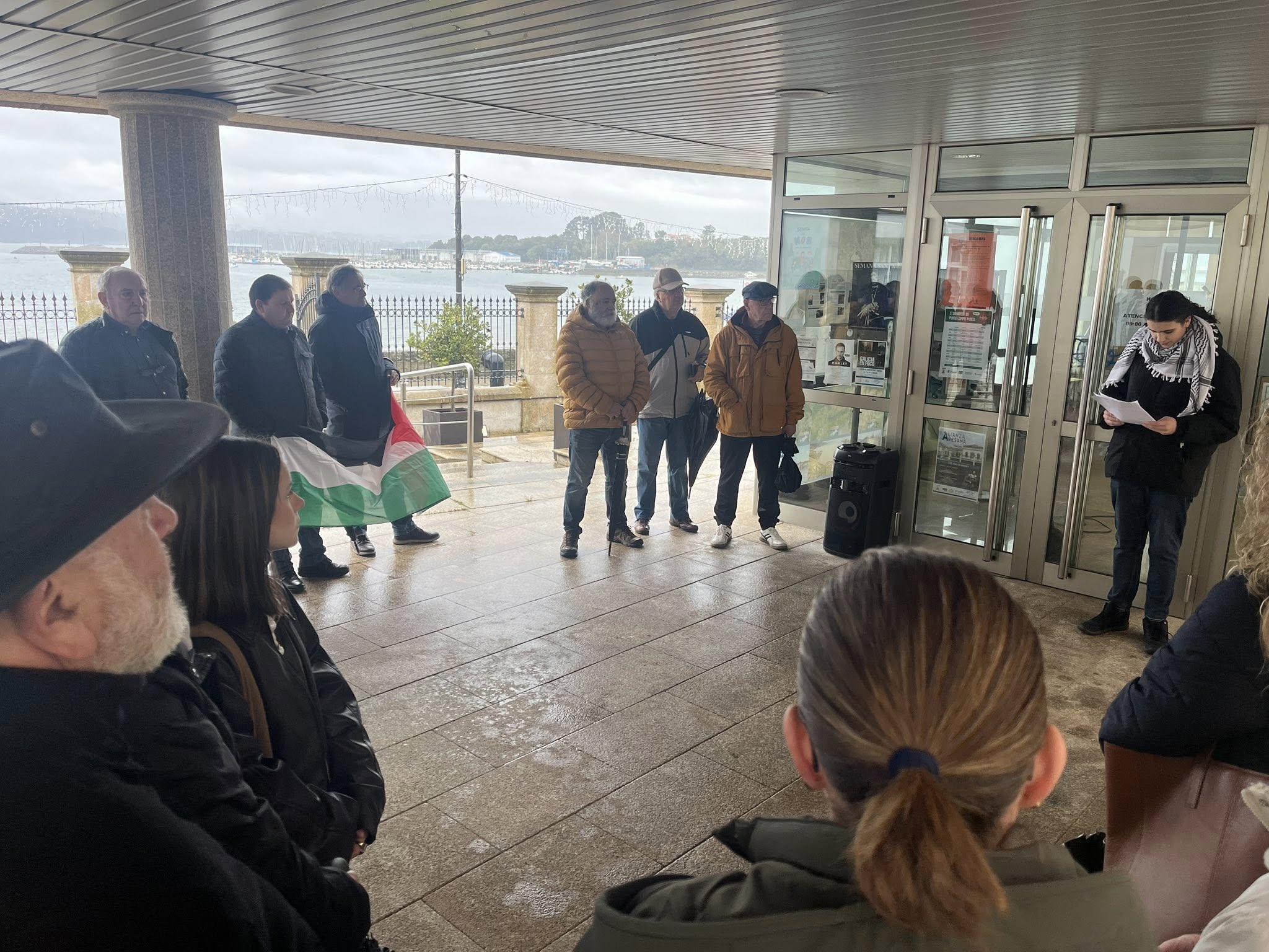 A concentración formou parte dunha xornada estatal para reivindicar o respecto ao dereito e a legalidade internacionais e reclamar unha paz xusta e duradeira en Palestina, que pasa polo remate do xenocidio en Gaza.